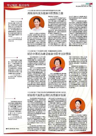 “党的十九大以来感受到身边最大的变化就是,大家越来越关注健康领域,防大于治的理念得到老百姓越来越多的认可。另外就是我国的生命健康领域取得了很多的突破,有越来越多的高科技手段为健康中国提供了技术支持。”
