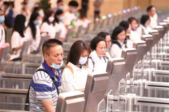 在构建区域协调发展新机制下,大湾区都市圈通勤交通网持续完善,图为广东珠海横琴口岸新旅检区域自助查验通道,旅客使用设备办理过关手续。