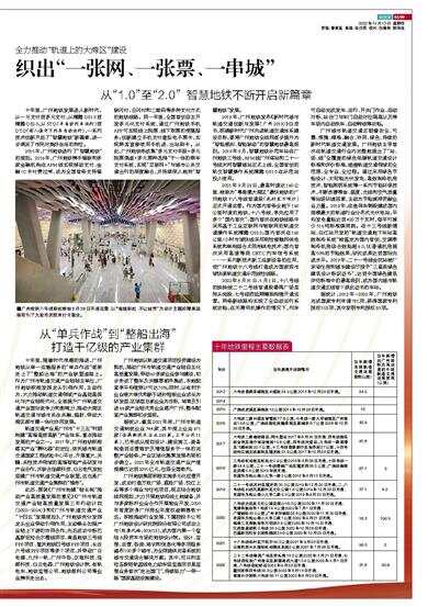 2019年,广州地铁发布《新时代城市轨道交通创新与发展(广州2019)》白皮书,明确新时代广州先进轨道交通体系建设目标,要将广州地铁全线网逐步提升为“智能感知、智能联动”的智慧地铁最高级别。2019年9月,智慧地铁示范车站在广州地铁三号线、APM线广州塔站和二十一号线天河智慧城站正式上线,全国首创的轨交智慧操作系统穗腾OS1.0在示范站投入使用。