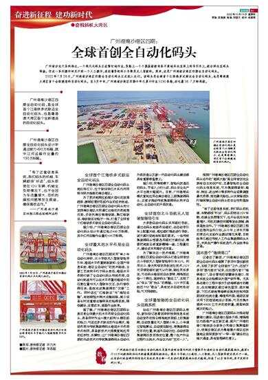 据介绍,同等规模下,智能化改造后的码头,节省人力约七成,码头安全生产水平也将大幅提升。目前,广州港将此模式复制应用在南沙港区三期集装箱码头,正逐步推动传统集装箱码头向半自动化、全自动化的升级改造。