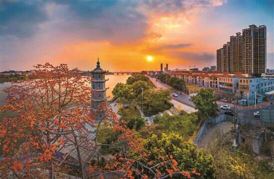 深秋的阳光投射在东江的波心,白鹭在低空徜徉,鱼儿跃出水面,沿江铺设的绿道树荫掩映,路旁芳草萋萋。江风迎面吹来,带来甘甜的气息。远山如黛,榴花塔隔江相望,城市的繁华就在山下,与这一湾东江盛景,共同勾勒出东莞石碣高品质滨江魅力小镇的美好生活画卷。