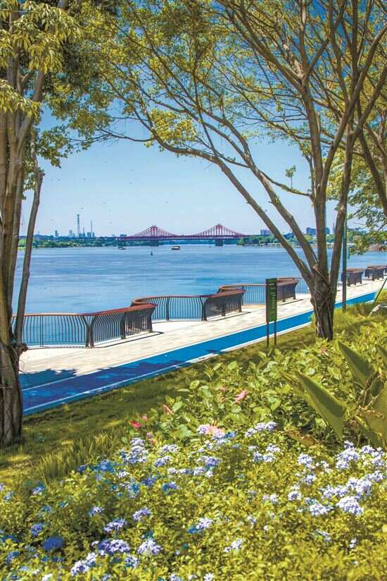 如今,市民们可以在江畔遥祭民族英雄,在盛大的节日为百舸争流的龙舟加油,在徐徐的江风中漫步,在绿茵花丛间感受惬意人生。