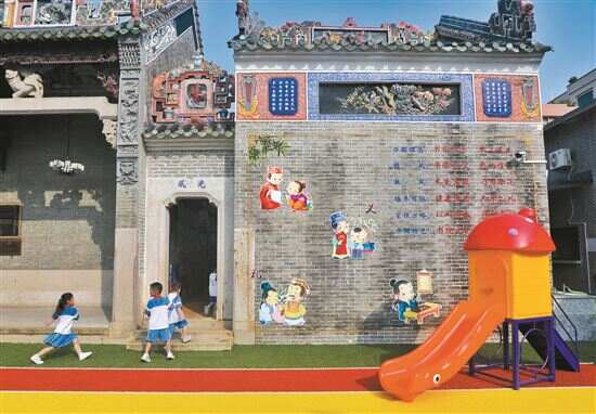 ■白云区拥有百年历史的石华书院变身幼儿园,开展特色教育。