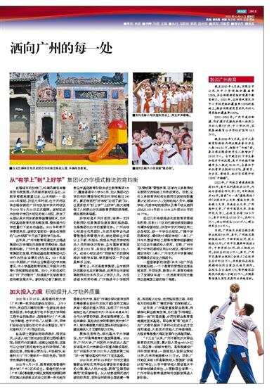 一座座崭新的校园(校区)在广州各区拔地而起,一个个教育的梦想在这里生根发芽、开花结果,教育公平、教育均衡走上了发展快车道……优质教育的阳光撒向这座南国之城的每个角落。