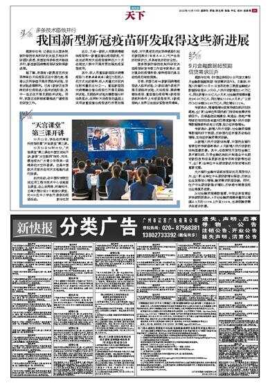 据新华社电 记者近日从国务院联防联控机制科研攻关组及相关科研团队获悉,我国坚持多条技术路线并行,新型新冠病毒疫苗研发取得新进展。