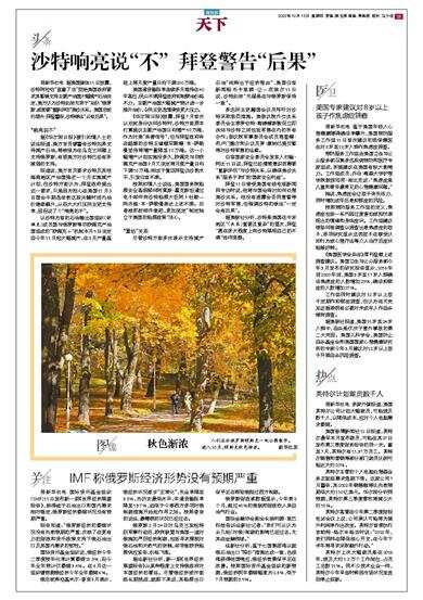 报道说,美方官员要求沙特及其他海湾地区产油国推迟一个月实施减产计划,但沙特方面认为,拜登政府提出这一要求,只是因为担心在美国11月8日国会中期选举前这段关键时间内油价继续飙升,从而大大打压民主党支持率,因而说了个“响亮的不”。