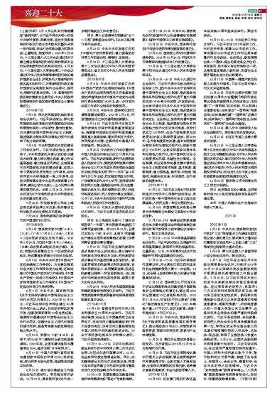 1月7日 习近平在主持召开中央政治局常委会会议时,对做好2019年12月27日以来湖北武汉监测发现的不明原因肺炎疫情防控工作提出要求。1月22日,以习近平同志为核心的党中央果断决策关闭离汉离鄂通道。经过艰苦卓绝的努力,我国用3个月左右的时间取得武汉保卫战、湖北保卫战的决定性成果。新冠肺炎疫情是新中国成立以来我国遭遇的传播速度最快、感染范围最广、防控难度最大的一次重大突发公共卫生事件,也是百年来全球发生的最严重的传染病大流行。习近平亲自指挥、亲自部署,坚持把人民生命安全和身体健康放在第一位,带领全党全军全国各族人民迅速打响疫情防控的人民战争、总体战、阻击战,取得了全国抗疫斗争重大战略成果。9月8日,全国抗击新冠肺炎疫情表彰大会举行。习近平讲话指出,在这场同严重疫情的殊死较量中,中国人民和中华民族以敢于斗争、敢于胜利的大无畏气概,铸就了生命至上、举国同心、舍生忘死、尊重科学、命运与共的伟大抗疫精神。习近平为“共和国勋章”获得者钟南山,“人民英雄”国家荣誉称号获得者张伯礼、张定宇、陈薇颁授勋章奖章。(下转08版)