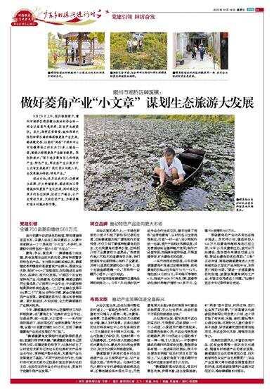 今年,磷溪镇政府和中山驻镇帮扶工作队积极探索,在“菱角之乡”仙美村成立合作社,注册品牌,统一包装,大力宣传……一系列举措的推动下,远近闻名的“金厝池菱角”身价大增,全镇700亩菱田增收560万元,实现了磷溪镇菱角产业起步发展的“开门红”。
