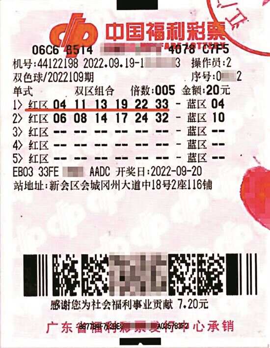 中得第22109期双色球134万多元大奖的是有着20多年彩龄的新会彩民姜先生(化名)。