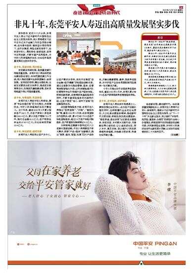 新快报讯 党的十八大以来,东莞平安人寿以习近平新时代中国特色社会主义思想为指导,深入贯彻落实习近平总书记关于金融工作的各项指示精神,在市委市政府、银保监分局的领导下,在平安集团、寿险总部的指导下,始终坚守初心、勇担使命、砥砺奋进,坚持守正和创新,不断丰富产品和服务,为守护人民幸福美好生活,社会经济高质量发展迈出坚实的步伐。