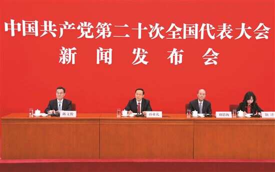 ■10月15日,中国共产党第二十次全国代表大会新闻发言人孙业礼在北京人民大会堂举行新闻发布会。 新华社发
