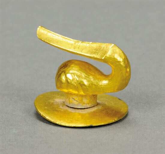 整器纯金铸成,金黄既是丰收的颜色,也是贵族奢华的象征。大雁做回首状,长喙伸出体外。双翅合敛,雁眼以细丝勾勒而成。