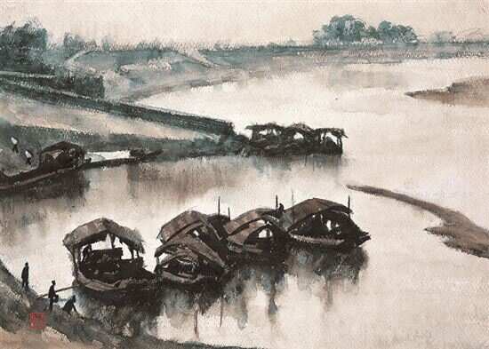 ■《韩江》,纸本水彩,32cm×44.6cm,1982年