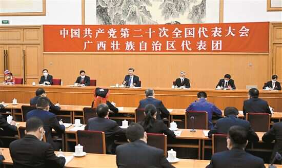 ■10月17日,习近平同志参加党的二十大广西代表团讨论。新华社发