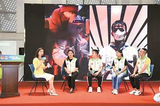 ■简小东在白云机场防疫转运志愿总结大会上分享经验。