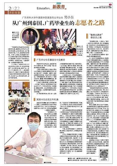 3个月前,广东药科大学2022届优秀毕业生简小东,在老师的鼓励下,及时抓住机遇,选择了这一份外人不太熟知的工作——参加教育部语合中心国际中文教育志愿者项目选拔并前往泰国担任国际中文教师,走出国门去分享祖国的美好,讲述中国好故事。