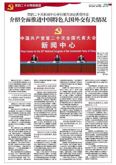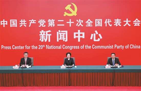 ■10月20日,中国共产党第二十次全国代表大会新闻中心举行记者招待会。中共中央对外联络部副部长沈蓓莉,外交部党委委员、副部长马朝旭围绕“习近平外交思想指引中国特色大国外交开拓前行”主题与记者交流。 新华社发