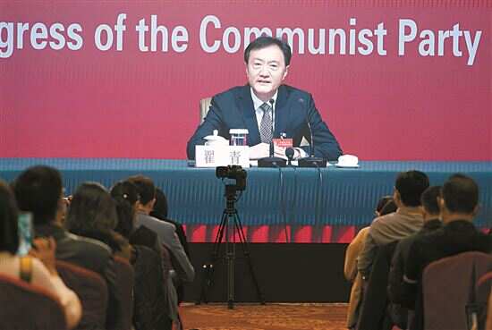 ■10月21日,中国共产党第二十次全国代表大会新闻中心举行记者招待会。生态环境部党组成员、副部长翟青围绕“建设人与自然和谐共生的美丽中国”主题与记者交流。这是分会场现场。 新华社发