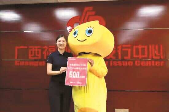 兑奖时,李先生换上广西福彩吉祥物福豆主题的头套、服装,“全副武装”地兑换奖金并和见证这一喜事的媒体记者、工作人员合影留念。在参观广西福彩文化展示馆后,李先生深入认识到购买彩票的部分资金是用于“扶老、助残、救孤、济困”等公益事业,于是他决定从奖金中捐出500万元,委托广西福彩中心用于公益事业。