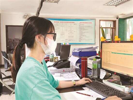 ■黄燕捷在四会市人社局的服务窗口前办公。