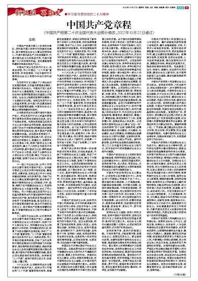 (中国共产党第二十次全国代表大会部分修改,2022年10月22日通过)