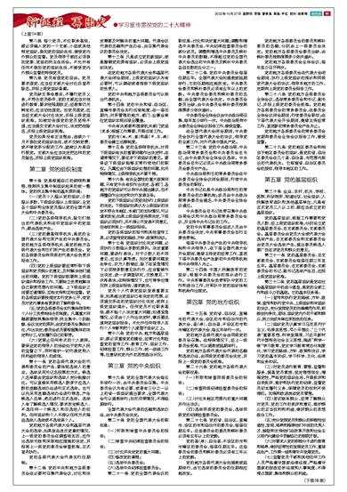 第十八条 党的中央、地方和基层组织,都必须重视党的建设,经常讨论和检查党的宣传工作、教育工作、组织工作、纪律检查工作、群众工作、统一战线工作等,注意研究党内外的思想政治状况。