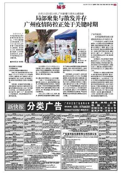 白云疫情10月25日8时至26日12时新增17例本土感染者,均在隔离观察或高中风险区域健康管理人群中排查发现。白云疫情呈现多点、多链、局部聚集等特点,情况仍较为复杂。