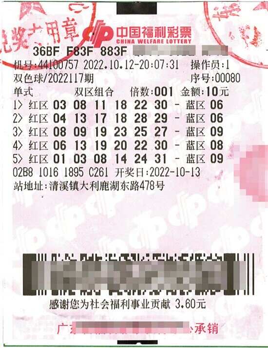 新快报讯 记者陆妍思 通讯员方志良报道 第22115期双色球开奖中,东莞桥头一彩民凭借两张胆拖票中得1072万元,仅隔一期,10月13日开奖的第22117期中,东莞再传出大奖喜讯,清溪镇44100757投注站一位彩民凭借一张10元5注单式自选票揽获一等奖608万元。