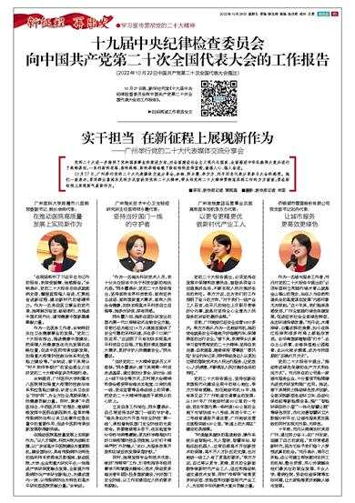 10月27日,广州举行党的二十大代表媒体交流分享会,余纳、师永霞、李方方、刘丹四名代表分享参与大会的感受。她们一致表示,要用群众喜闻乐见的方式宣讲好党的二十大精神,带头将党的二十大精神贯彻落实到工作的方方面面;要在新征程上展现新气象新作为。