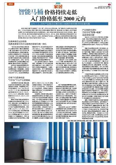 当前,智能马桶不仅能解决“人有三急”,还衍生出众多的功能。除了解决冬天如厕时坐在马桶圈上一片冰凉的困扰,智能马桶还具备自动感应翻盖、臀部冲洗、除臭杀菌、音乐播放,甚至是健康监测等,成为消费者家装升级的必备购物清单。然而,智能马桶目前尚未真正走进大多家庭。截至2021年年底,国内智能坐便器的渗透率仅在4%左右。而日本、美国、韩国智能坐便器渗透率已经高达90%、60%、60%。有业内人士表示,想要推动产品普及,还需在细分消费客群的使用需求和场景挖掘、智能化技术研发升级等方面多下功夫。