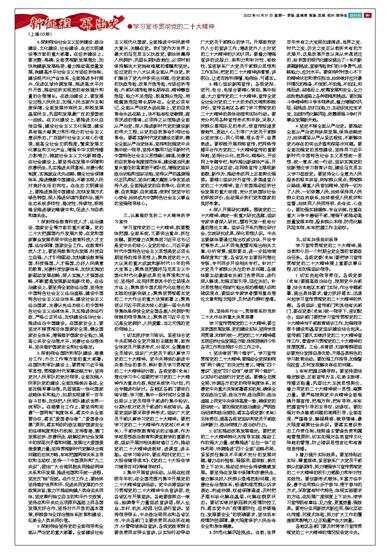 学习宣传党的二十大精神,既要整体把握、全面系统,又要突出重点、抓住关键。要把着力点聚焦到习近平总书记是党中央的核心、全党的核心,习近平新时代中国特色社会主义思想是党必须长期坚持的指导思想上;聚焦到党的十九大以来的重大成就和新时代10年的伟大变革上;聚焦到把握好马克思主义中国化时代化最新成果的世界观和方法论,坚持好、运用好贯穿其中的立场观点方法上;聚焦到中国式现代化在理论和实践的创新突破上;聚焦到贯彻落实党的二十大作出的重大决策部署上;聚焦到以习近平同志为核心的新一届中央领导集体是深受全党全国各族人民拥护和信赖的领导集体上;聚焦到习近平总书记是全党拥护、人民爱戴、当之无愧的党的领袖上。