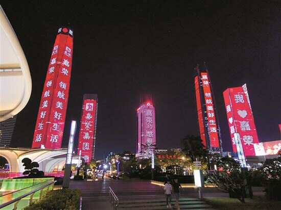 新快报讯 10月28日晚上7时,东莞CBD多座高楼外墙屏幕播出“嘉荣30岁生日快乐”“我爱嘉荣、我爱东莞”等字样,庆贺嘉荣集团成立三十周年。