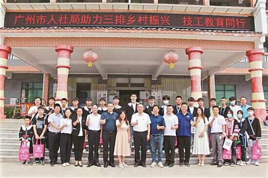 为此,驻镇工作队得到了组团帮扶成员单位广州市人社局和人社局下属6所公办技工院校的大力支持,为三排镇初高中毕业生入读广州技工院校搭桥铺路,争取开辟一条“绿色通道”:三排镇的学生来多少、招多少,而且全部免费就读。
