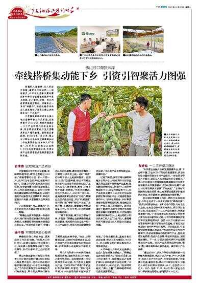 “为民营企业融入农村发展搭建平台,是‘千企帮千镇,万企兴万村’行动的前提要求,多主体社会力量协同参与乡村产业振兴,一定会同步带动人才振兴,进而以人为本推动乡村全面振兴。”佛山对口帮扶云浮指挥部驻镇帮镇扶村专项工作组副组长刘荣康表示,在乡村振兴浪潮下,佛山与云浮的帮扶实质是“双向奔赴”,“云浮有可深挖附加值的资源,佛山有需要创造更多价值的民间资金,我们要做的,就是精准对接所需。”