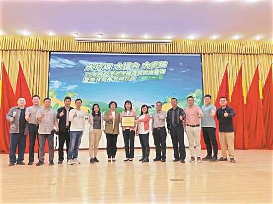 小试牛刀,“12221”大放异彩。当年,徐闻菠萝总产值达15亿元,较2018年的9.8亿元增长了53%。而此后,徐闻菠萝产值连年走高,2022年更创下产量约79.6万吨、产值约25亿元的新纪录。“产量和单价齐齐向上,果农的收入一年比一年高,他们心存感恩,自发为工作组‘封神’。”陈如约笑着说,2022年3月11日,百名网红千名主播“菠萝的海”培训及数字营销行动总结会在徐闻举行,现场,他代表全县菠萝果农给工作组组长黎小军颁发大家集体商议自发自创的“百姓大奖”——“菠萝的海女神奖”, “‘12221’工作组一直奔波在‘菠萝的海’的路上,他们为菠萝‘出海’谋划更多‘航线’,果农们懂得感恩,想表达的是最真挚最淳朴的谢意。”