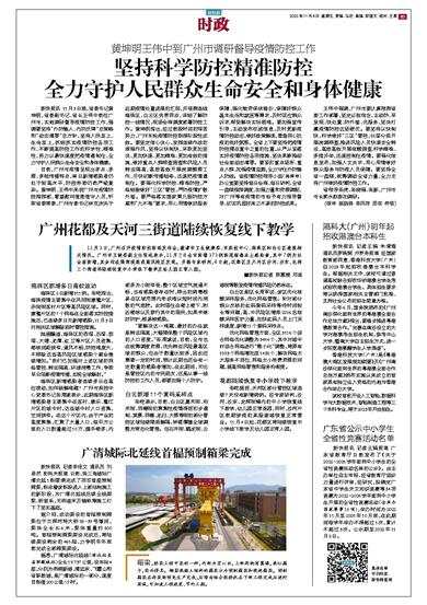 新快报讯 11月3日晚,省委书记黄坤明,省委副书记、省长王伟中前往广州市,实地调研督导疫情防控工作,强调要坚持“外防输入、内防反弹”总策略和“动态清零”总方针,坚持人民至上、生命至上,抓细抓实疫情防控各项工作,不断提高防控工作的科学性、精准性,努力以最快速度把疫情遏制住,全力守护人民群众生命安全和身体健康。