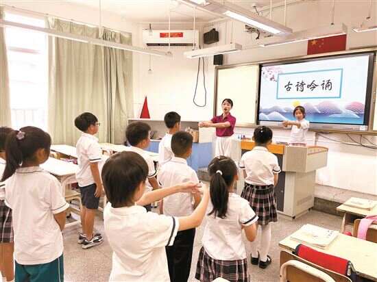 ■怡园小学为吟诵示范校,老师在暑期托管中为学生们示范吟诵。