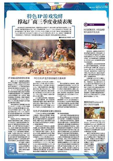 而部分企业不同特色的IP游戏顺利发酵,成为支撑其第三季度业绩表现的主要因素。例如,完美世界拥有“诛仙”“完美世界”等多个经典IP。该公司在2022年第三季度财报中称,前三季度游戏业务实现收入54.48亿元,游戏业务实现盈利15.47亿元,同比增长约100%。