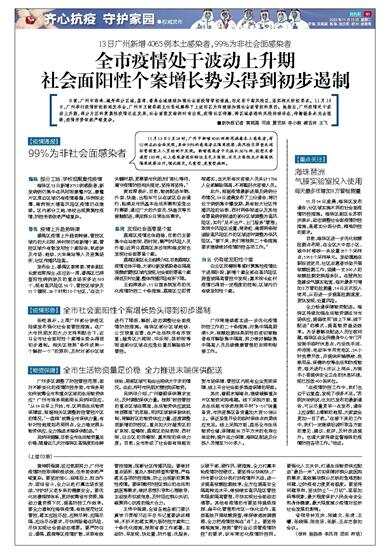 黄坤明强调,经过前期努力,广州市疫情防控取得积极成效,但形势依然严峻复杂。要坚定信心、迎难而上,担当作为、团结奋斗,全力以赴打赢这场攻坚战,守护好父老乡亲的健康安全。要优化完善指挥体系,更好统筹省市资源,推动力量资源下沉,提高防控工作效率。要全力遏制住海珠疫情,有效规范社区管控,落实应检尽检、应转尽转、应隔尽隔、应治尽治要求,尽快消除潜在风险,尽快实现社会面动态清零。要严防白云、番禺、荔湾等区疫情扩散,采取有效管控措施,阻断社区传播风险。要做好重点场所、重点人群的排查和管理,严格落实各项防控措施,防止出现新的聚集性疫情。要保障好防控区群众的生活和就医等需求,做好思想引导和心理疏导,主动发布权威信息,及时回应群众关切,凝聚同心抗疫的强大合力。