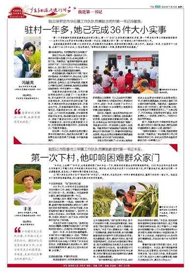 “丰书记,上去哪?”“丰书记,去我家喝杯茶!”如今丰圣一下乡,新坡村村民就会这样热情地招呼他。1992年出生的丰圣是驻阳江市阳春市三甲镇工作队中年纪最小的驻村书记。刚开始,村民听说丰圣是个90后的外省小伙,听不懂当地方言,就对这位第一书记满腹狐疑,甚至他入户调研时都不愿意与他交流。