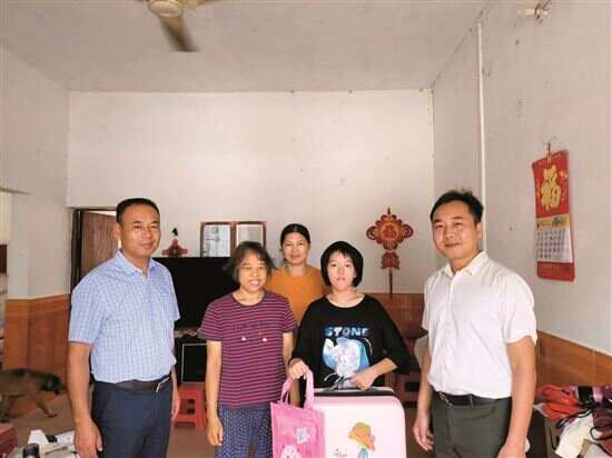 ■罗舟(右一)和驻镇工作队队长一起慰问火岗村学龄残疾儿童。