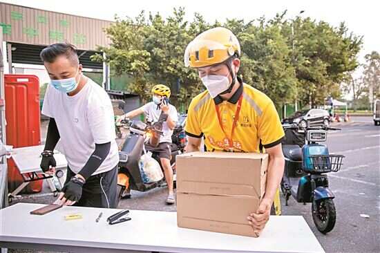 “今年4月白云区疫情防控期间,我们就尝试过‘接力跑’模式配送。所以这一次到后滘社区复制,已经是轻车熟路。”饿了么公共事务部华南总监李彩萍介绍说,“后续我们还会继续与周边的西滘、龙潭、大塘等区域继续拓展‘接力跑’模式,保障市民的物资供给。”