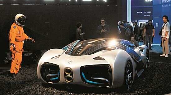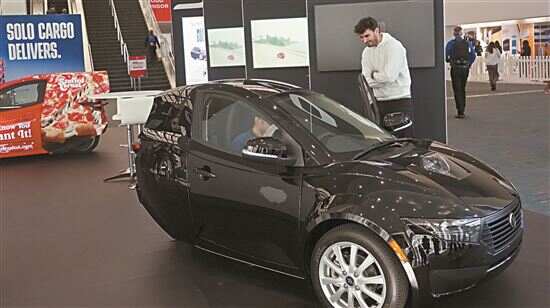 ■人们在媒体预展上体验一款单人座汽车。