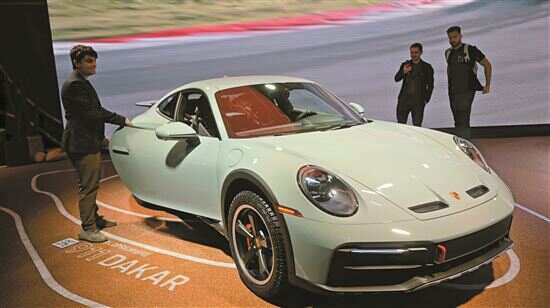 ■人们在媒体预展上参观保时捷跑车。