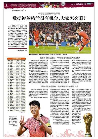 北京时间21日0时,2022年卡塔尔世界杯即将打响。在各队名单都基本确定之后,德国《转会市场》公布了32强的各种数据。在总身价榜上,冠军头号热门巴西队身价11.4亿欧元,只能排在第二;排名第一的是英格兰队,球队总身价高达12.6亿欧元。