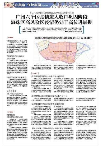 新快报讯 记者庄嘉宝报道 11月19日,广州市海珠区新型冠状病毒肺炎疫情防控指挥部办公室发布公告,目前海珠区疫情仍处高位平台期,高风险区域疫情上升势头仍未遏制住,传播风险未完全阻断,经综合研判,2022年11月13日发布的《海珠区关于继续强化部分区域疫情防控措施的通告》延续至11月22日24时。