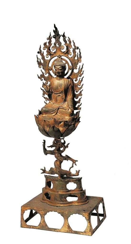 ■五代吴越国铜释迦龙座像,通高68厘米,浙江省博物馆藏