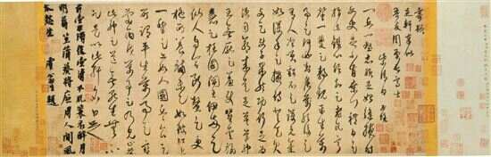 作为道教南宗教旨的实际创立者的白玉蟾,同时是南宋时期的重要书家,虽擅长行、篆、隶诸体,但仍然以草书闻名,上追魏晋唐,不仅继承了张旭、怀素的草法和意趣,又得“二王”的风神,旁掺北宋四家的书法,尤以黄庭坚为多。传世墨迹仅有三件。一件草书《足轩铭》卷在北京故宫博物院,另一件行书《仙庐峰六咏诗》卷在上海博物馆,再一件大草《天朗气清诗》卷在台北故宫博物院。