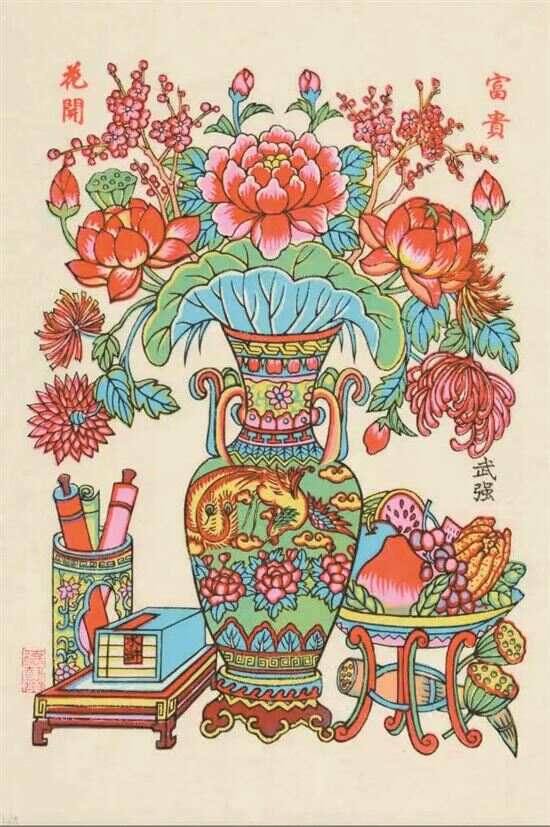 传统年画是我国民间艺人创作、供千家万户主要在新年之际张挂的一种乡土美学艺术形式。它是中国艺术大观园中的一朵奇葩。
