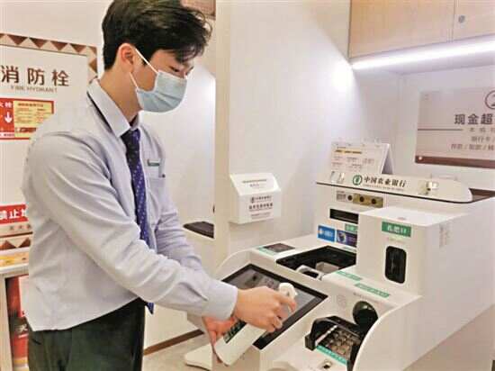 ■在等候客户的过程中,农行广州分行工作人员对网点进行全方位消杀,全面筑牢疫情防控“卫生线”。